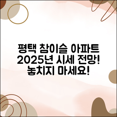 경기도 평택시 합정동 참이슬 아파트의 시세를 고려한 효과적인 투자 전략을 제시합니다. 2025년 10월의 시세 흐름을 파악하면서, 성공적인 투자 결정을 내리세요.