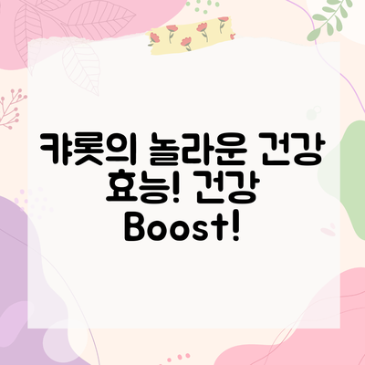 안녕하세요, 여러분! 오늘은 제가 개인적으로 사랑하는 식재료, 바로 캬롯의 놀라운 건강 효능에 대해 이야기해볼게요. 혹시 캬롯에 대해 알고 계신가요? 정말 많은 영양소가 담겨 있어서, 우리 몸에 얼마나 이로운지 새삼 깨닫게 되었답니다!