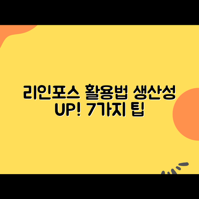 리인포스는 생산성 향상을 위한 강력한 도구입니다. 이를 활용하기 위한 구체적인 방법은 다음과 같습니다.
