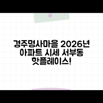 여러분, 경상북도 경주시 서부동의 경주명사마을 아파트에 대한 이야기를 한번 나눠볼까요? 이 아파트가 개발된 이후 시세의 변화를 살펴보면 정말 흥미로운 점이 많답니다. 특히 2026년 1월 시세를 기준으로 한 비교 분석은 더욱 주목할 만한데요!