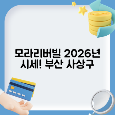 부산시 사상구 모라동의 모라리버빌 아파트는 2026년 1월 시세가 1억 9,500만 원으로 예상됩니다. 이 정보는 투자자나 구입을 고려하고 있는 이들에게 매우 중요한 기회를 의미합니다.
