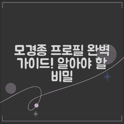 모경종 프로필 완벽 가이드: 모두가 알아야 할 비밀
