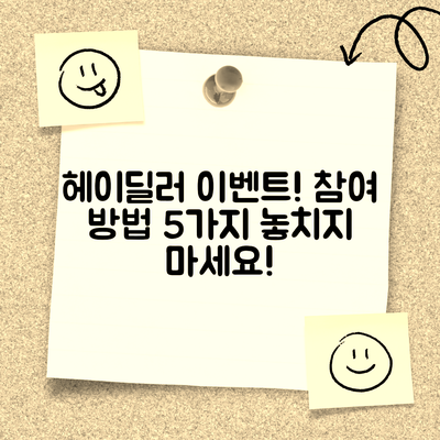 이벤트 참여 절차 안내 헤이딜러 이벤트에 참여하기 위해서는 몇 가지 간단한 절차를 따라야 합니다. 아래의 단계에 따라 손쉽게 참여하실 수 있습니다. 단계 내용 1. 앱 다운로드 헤이딜러 앱을 설치하여 회원 가입합니다. 2. 이벤트 확인 앱 내에서 진행 중인 헤이딜러 이벤트를 찾아 확인합니다. 3. 응모하기 원하는 차량을 선택하고 응모 버튼을 클릭합니다. 4. 관련 정보 입력 이름, … Read more